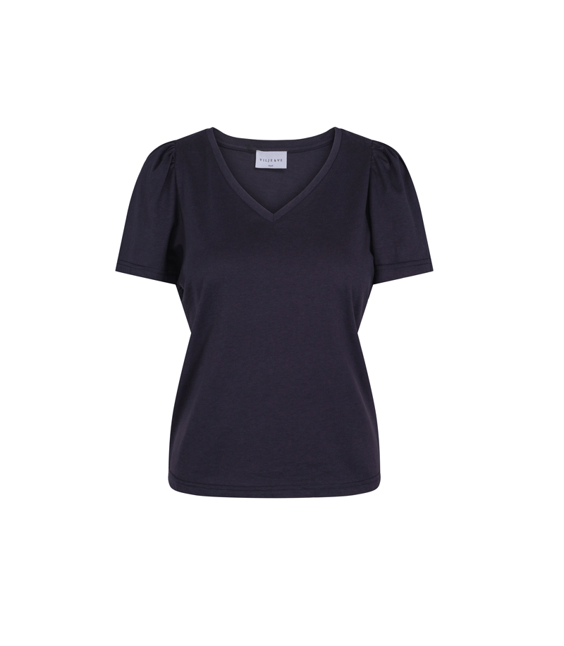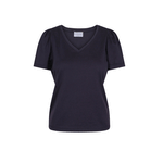 Anette T-skjorte i marineblå lin- og lyocellmiks med puffede ermer.