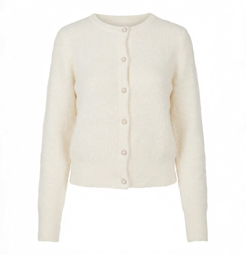 Er en supermyk og eksklusiv ribbestrikket cardigan. Den er strikket i en varm og behagelig alpakkablanding (78%). Den har et tidløst snitt med rund hals og rette ermer. Perleknappene foran tilfører et delikat og sofistikert uttrykk. Et stilrent plagg som gir mange stylingmuligheter. Perfekt til en enkel hverdagstil med jeans, men også nydelig over kjole når du ønsker et mer elegant uttrykk.