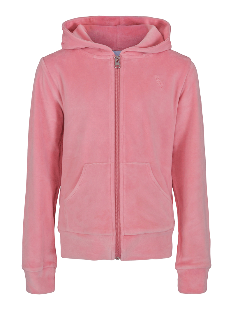 Myk og behagelig Hermine velourjakke fra Vilje & Ve. Utstyrt med en praktisk glidelås i front, hette og lommer, er denne jakken ideell for både avslapping og lek.