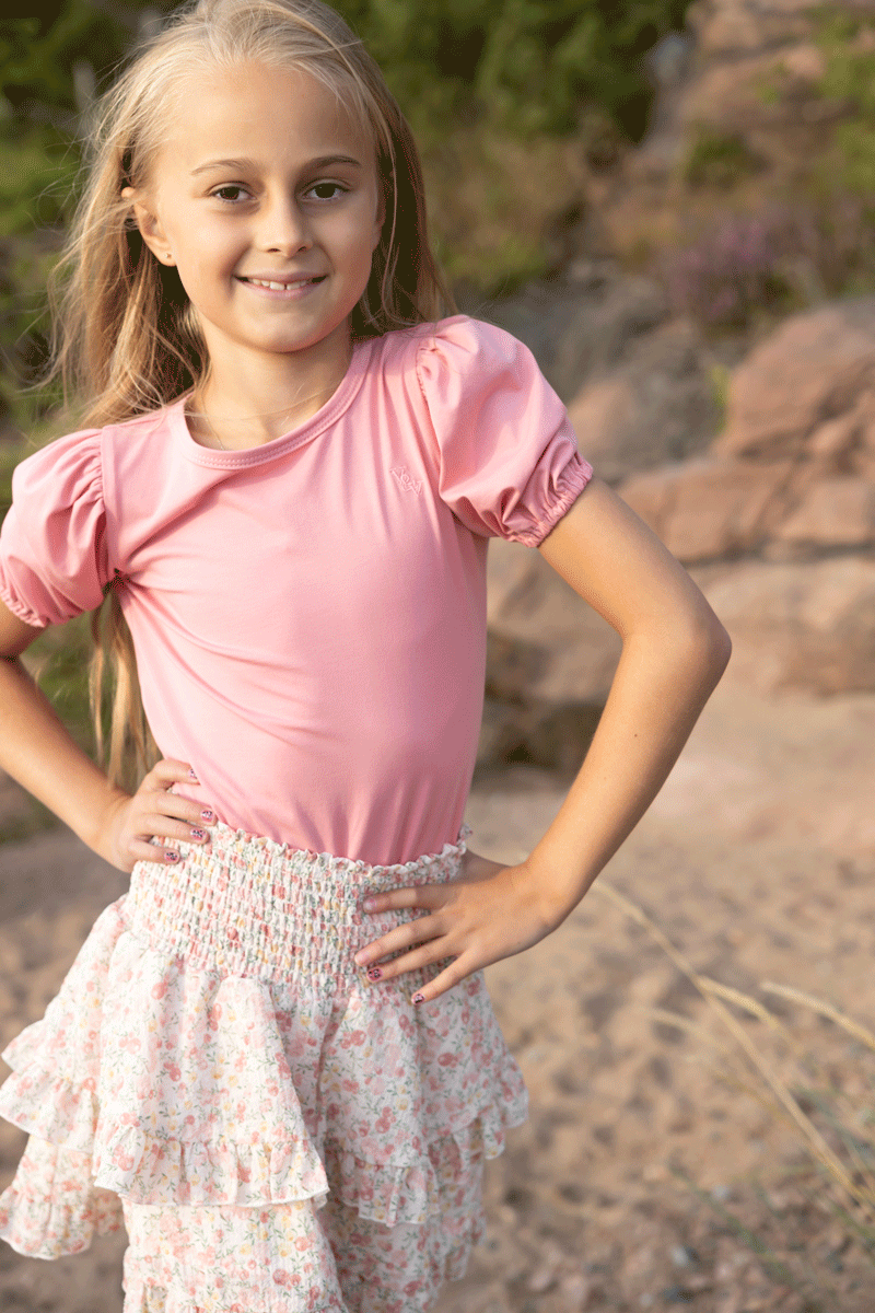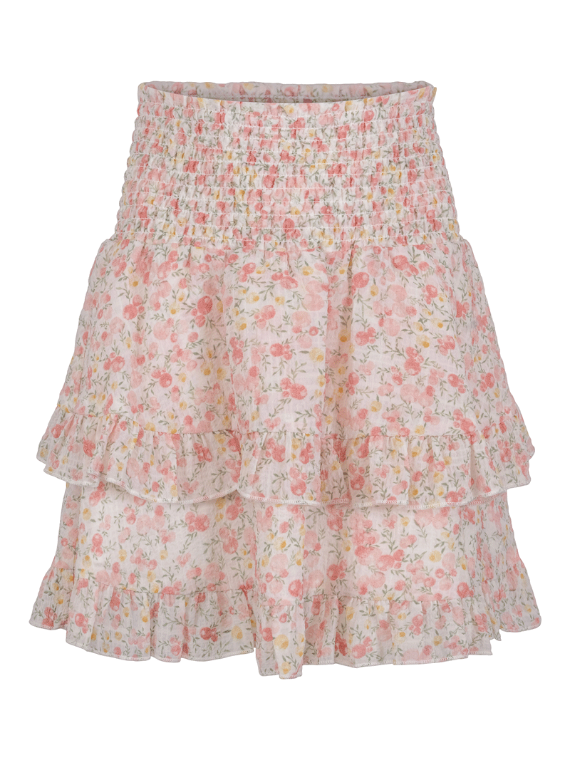 | Lilly volangskjørt med vakkert print og elastisk smock i livet gir en behagelig passform og en tidløs stil. Perfekt for både hverdagsbruk og festlige anledninger! |