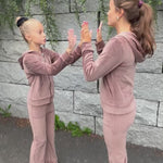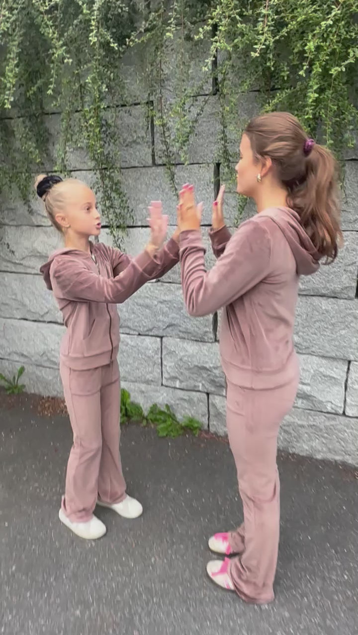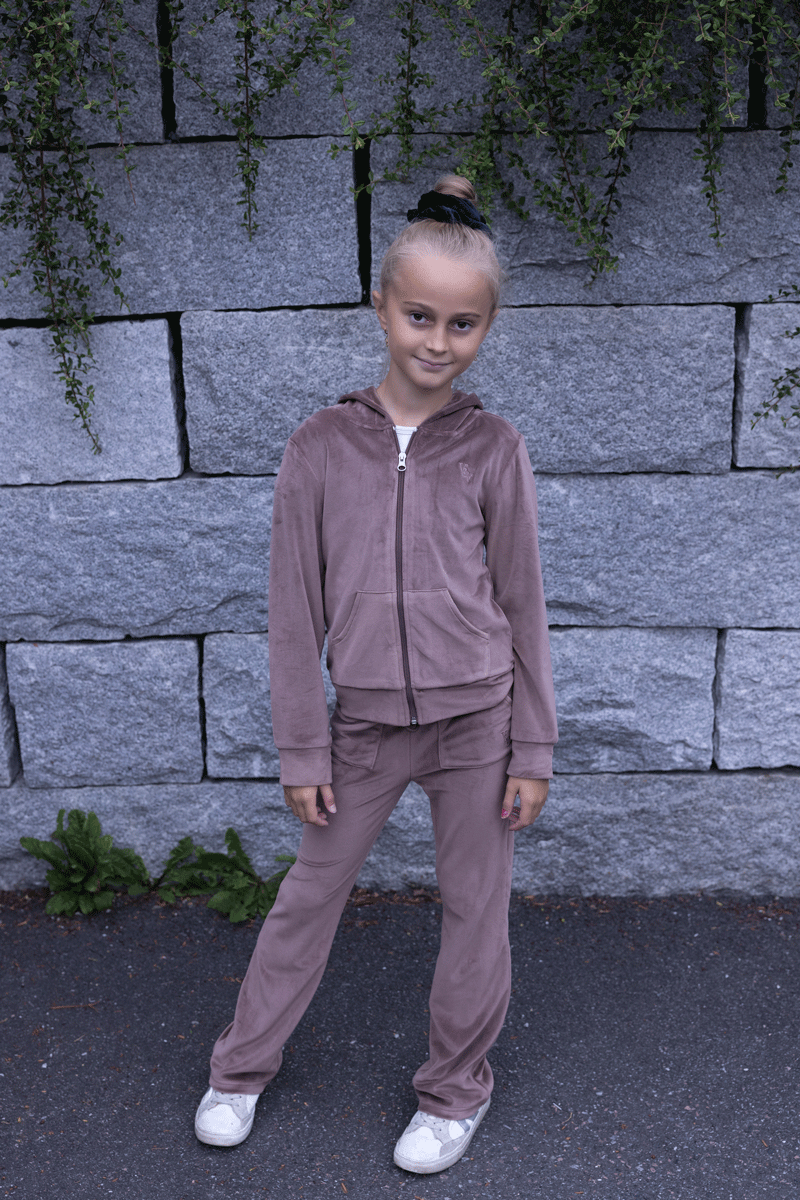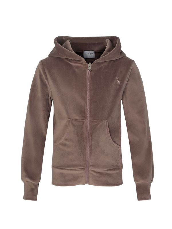 Myk og behagelig Hermine velourjakke fra Vilje & Ve. Utstyrt med en praktisk glidelås i front, hette og lommer, er denne jakken ideell for både avslapping og lek. Passer perfekt med Hermine velour buksen.